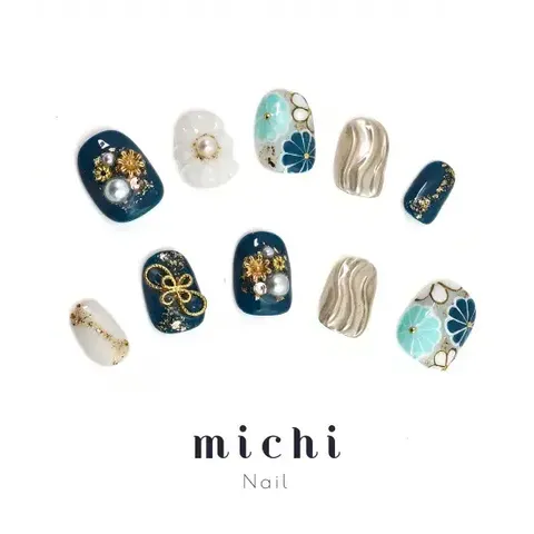 ブルーの和柄フラワーネイルはこちらから 650円(税込)