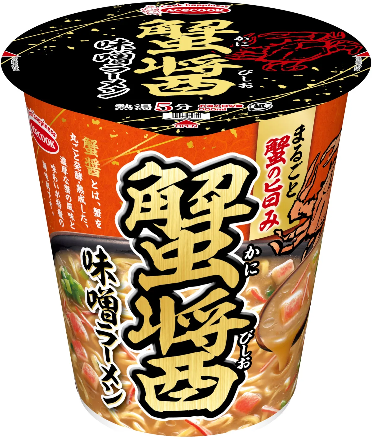 「蟹醤」の特徴を強調したパッケージデザインは、商品の魅力を視覚的にも訴求しており、シズル写真が濃厚な味わいを期待させます。コンビニやスーパーの棚で、一目で目を引くデザインは新しい冬の味覚を期待させます。