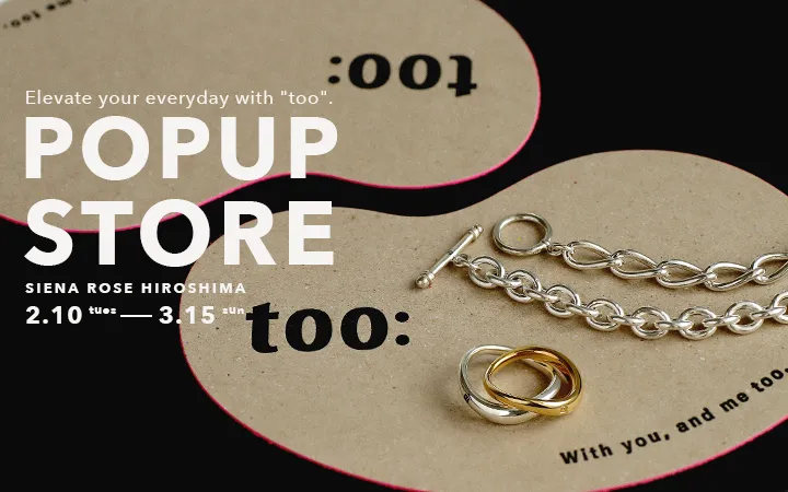 「too:」は、従来のペアリングの固定観念を破り、カップルそれぞれの個性を尊重しながらも、強い繋がりを感じられるジュエリーを提案しています。「同じじゃなくていい。でも、ふたりでひとつ。」というコンセプトのもと、ユニセックスデザインを取り入れ、男女問わず誰でも楽しめるスタイルを展開しています。