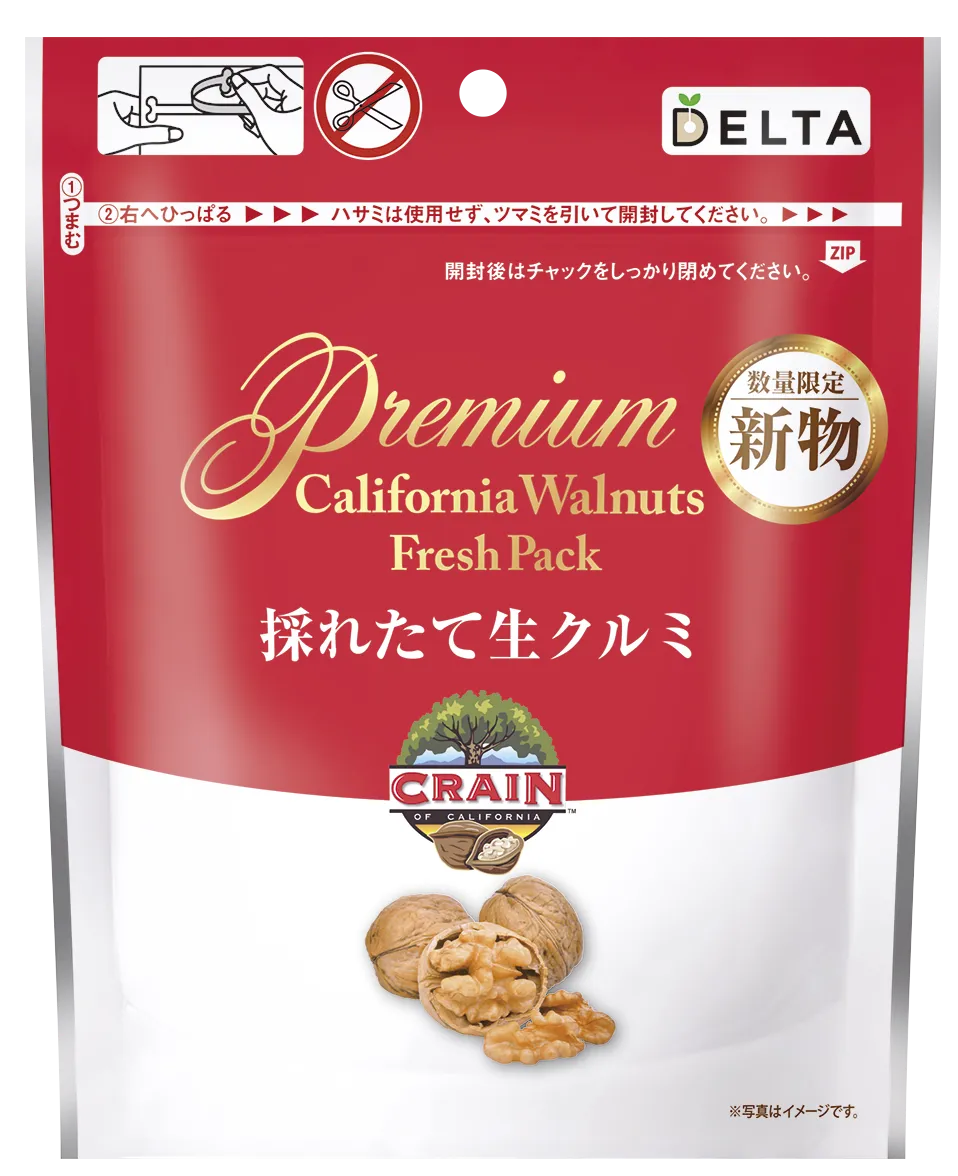 2025年12月10日(水)、株式会社デルタインターナショナルから数量限定の「クレイン社 プレミアム採れたて生クルミ170g」が発売されます。この季節だけ楽しめる特別なクルミは、カリフォルニアの恵まれた環境で育った新鮮なものです。収穫後にすぐ殻を割り、フレッシュな香りと味を逃さずパッキングしました。