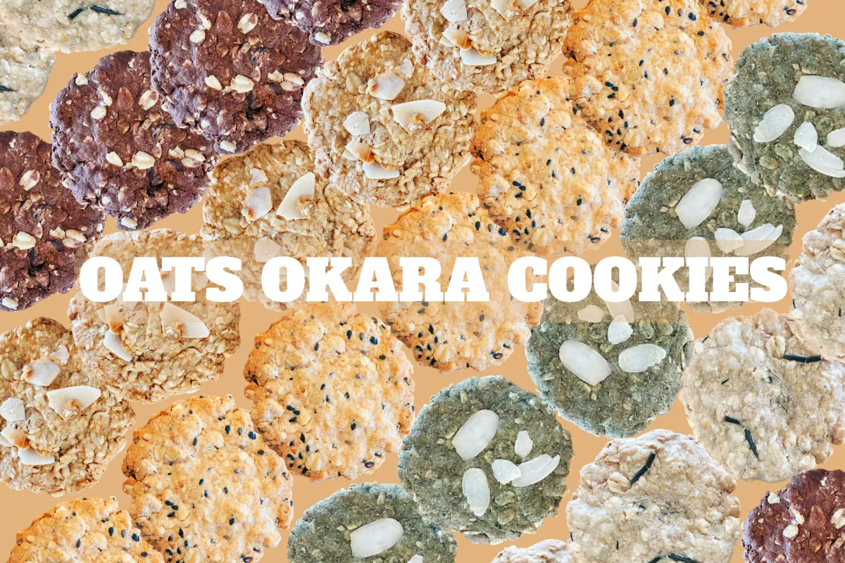 『オーツおからクッキー』は、5種類の個性的なフレーバーが用意されています。ココア&アーモンド、ココナッツ、ごま&胡桃、よもぎ、ハーブ&ソルトのそれぞれが持つ風味を楽しむことができます。また、乳製品や小麦粉、バターは一切使用しておらず、100%プラントベースのため、アレルギーを持つ方やヴィーガンの方でも安心していただけます。