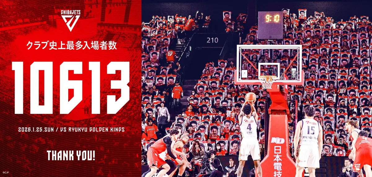 千葉ジェッツが新ホームアリーナへ移転してから2シーズン目。観客動員数の更新は偶然ではなく、地域に根ざした活動や戦略的なPR、積極的な社会貢献が影響しているといえるでしょう。ファンや自治体、地域のパートナーたちの支援があって初めて達成できた記録であり、今後もさらなる経済活性化や感動を生み出す活動に邁進していくとのことです。