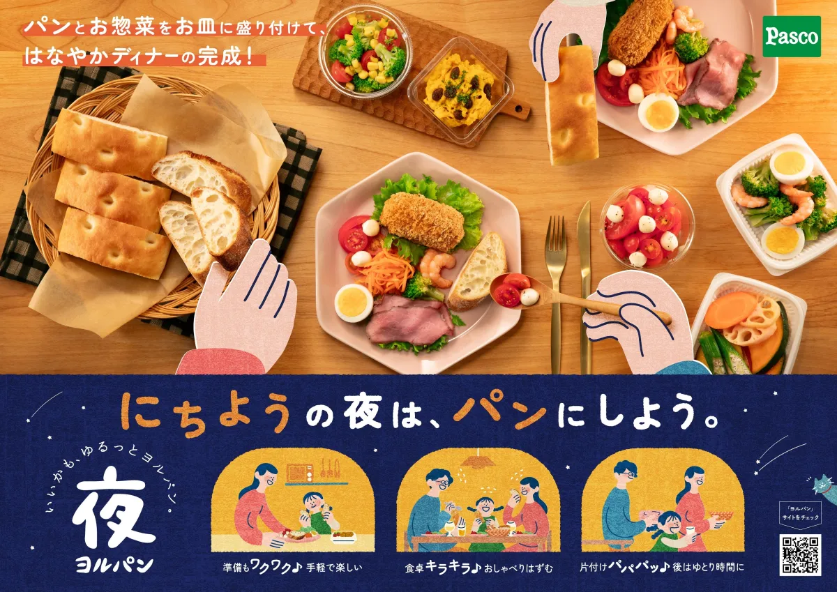 『にちようのヨルパン』は、日曜日に設定された特別な提案です。このプロモーションを通じて、家族や友人と共に特別な夕食を楽しむ瞬間を提供します。ヨルパンの魅力を伝えるために、Pascoは新たにヨルパン専門のウェブサイトをリニューアルし、利用しやすくなるように改善を行いました。サイトでは、ヨルパンを楽しむ家族の様子を描いたスペシャルムービーやイラストが公開され、楽しく手軽な夕食スタイルが視覚的に表現されています。