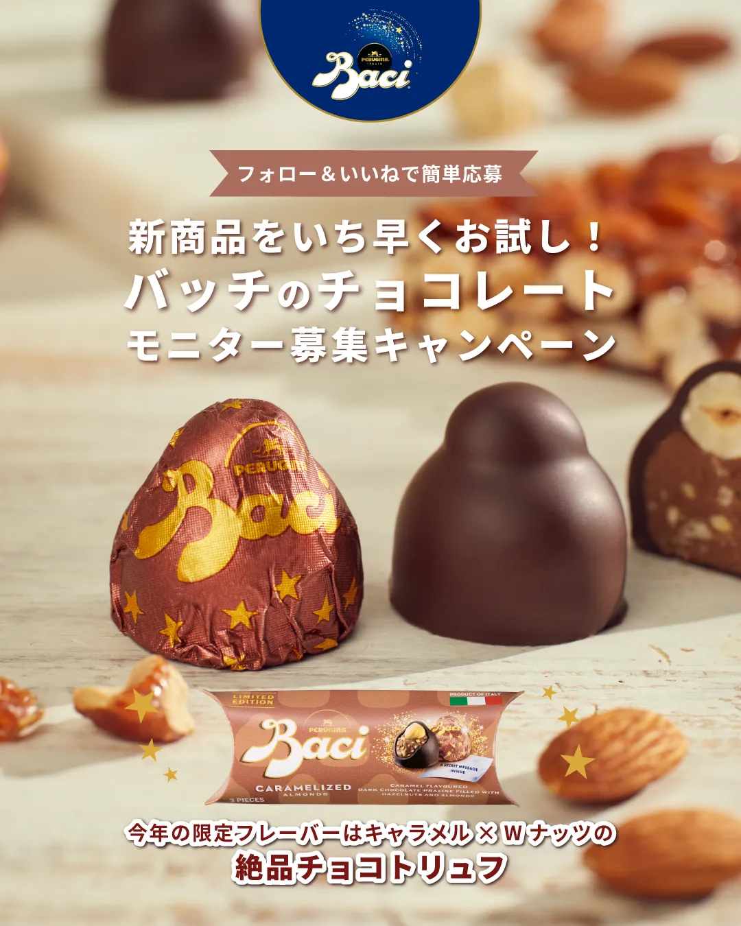 今年の秋も、イタリアを代表するチョコレートブランド「BaciⓇ(バッチ)」が、特別なモニターキャンペーンを開催します。この機会に、人気の「バッチ」の味わいをいち早く試してみませんか?