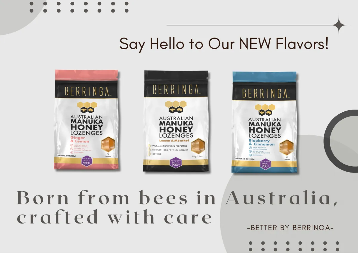 寒い季節にぴったりのアイテム、オーストラリアのマヌカハニーを贅沢に使った「BERRINGA(ベリンガ)」ののど飴が新たなフレーバーを加えてリリースされます。新登場するのは「ジンジャー&レモン」と「ブルーベリー&シナモン」の2種類。この冬もあなたの喉をしっかりとサポートしてくれることでしょう。最新フレーバーを詳しくご紹介します。