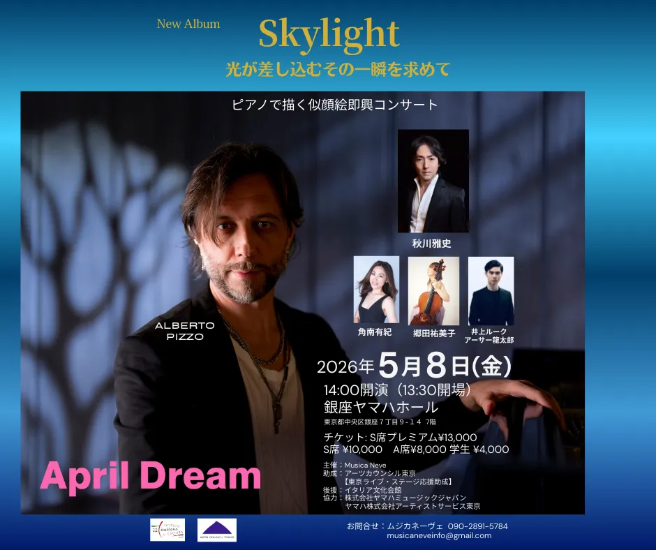 2026年5月8日、「Skylight〜光が差し込むその一瞬を求めて〜」というコンサートに出演します。銀座ヤマハホールで、彼自身のオリジナル曲『Sky』をはじめとした楽曲を披露します。豪華なメンバーとともに、音楽で人々を繋げる特別な体験が待っています。この機会に、ぜひ彼の音楽の力を体感してみてください。