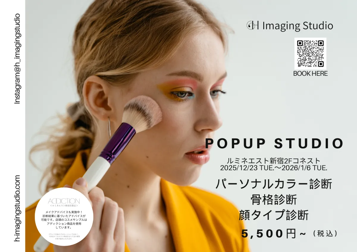 2025年の年末、ルミネエスト新宿の2階コネストで開催されるH Imaging StudioのPOPUPスタジオは、自分自身を再発見する絶好の機会を提供します。この期間限定のイベントは、12月23日(火)から2026年1月6日(火)までの間、メイクやファッションに関する新たなアドバイスを受けられる場として注目されています。