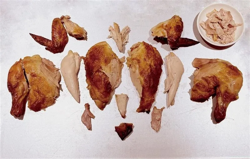 焼き上がった後は、鶏を捌いて部位別に活用しましょう。もも肉やそりレスはジューシーな主役で、手羽元や手羽先は香ばしさを引き立てるアクセントに。むね肉はしっとりとした味わいが楽しめます。希少部位のカットやガラ周りの小間肉も忘れずに!