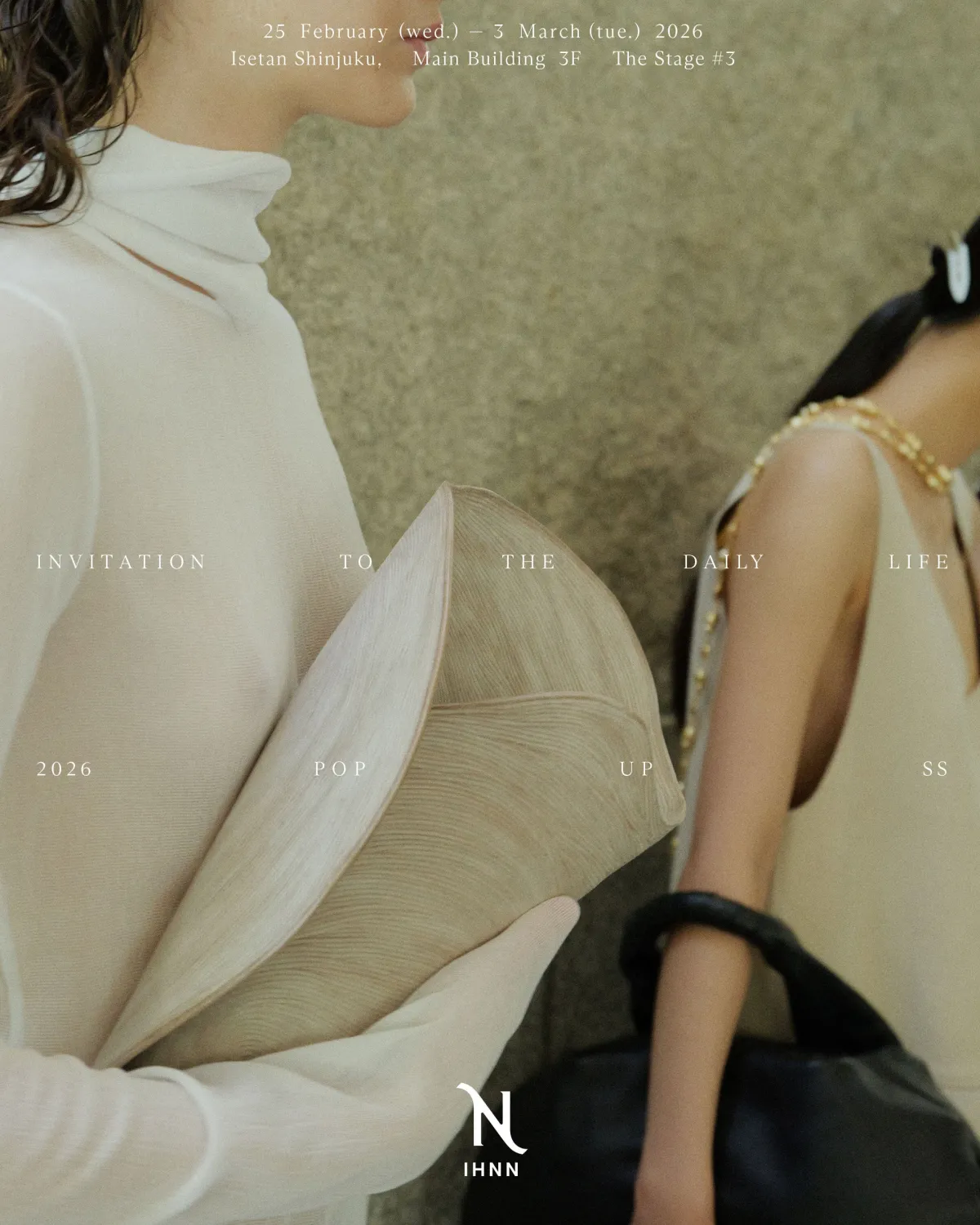 IHNNが2026年春夏コレクションのポップアップイベントを、伊勢丹新宿店 本館3階 ザ・ステージ#3で開催します。本イベントのテーマは「日常への招待」。日常の中に潜む小さな幸せや穏やかな時間を再発見し、その魅力を伝える特別な機会です。
