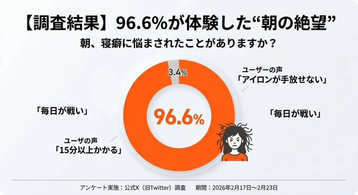 最近の調査で、実に96.6%の人が朝の寝癖に悩んでいることが明らかになりました。朝の限られた時間を、アイロンやブローで奪われている女性たち。そんな日常から脱却するために、トゥルージュバンスが新たに打ち出した「朝のタイパ改善キャンペーン」に注目が集まっています。このキャンペーンは、弱酸性のpH5.5のシャンプーを使うことで、毎朝のストレスを軽減しようというものです。