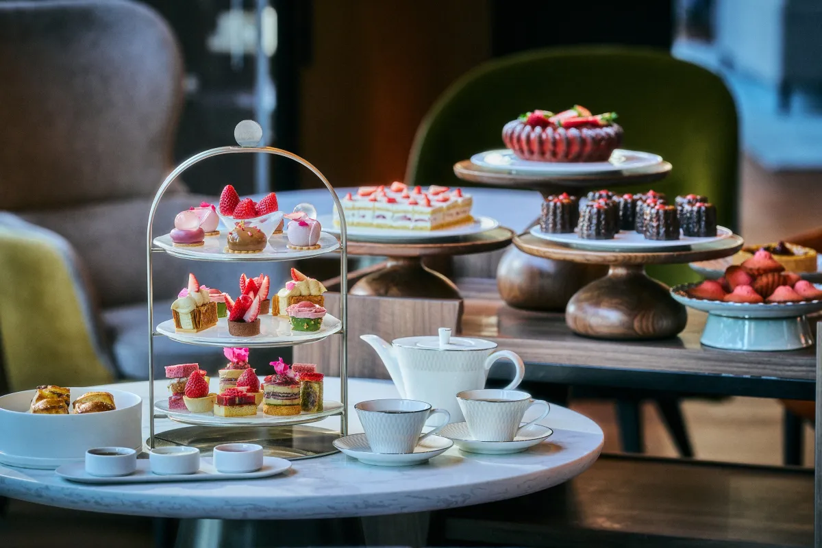 上段・中段には、滑らかなストロベリーミルククリームが主役の「いちごとベルベットのムース」や、色合いが華やかな「ピスタチオストロベリー」、そしてチョコレートガナッシュといちごのバランスが魅力の「チョコレートストロベリータルト」など、心あたたまるスイーツが揃っています。また、セイボリーには、いちごの酸味を活かした「クラブケーキ&ホワイトアスパラガスのサンドウィッチ」やローストビーフが自慢の「国産牛のローストビーフ&ストロベリーチャツネ」など、絶妙な組み合わせが楽しめる一皿が並びます。