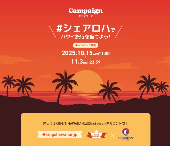 POP UPの開催に合わせ、「ハワイ行き往復航空券が当たる」というキャンペーンも展開されます。詳しい情報は公式Instagramアカウントで発表されるので、フォローしてお見逃しなく!