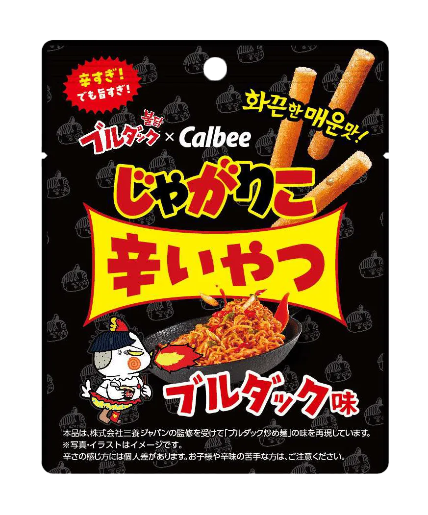 - - 手軽さ:スティック状の形状で、いつでもどこでも手軽に楽しめる「じゃがりこ」。その心地よい堅さと食感が、ブルダック風味を引き立てます。