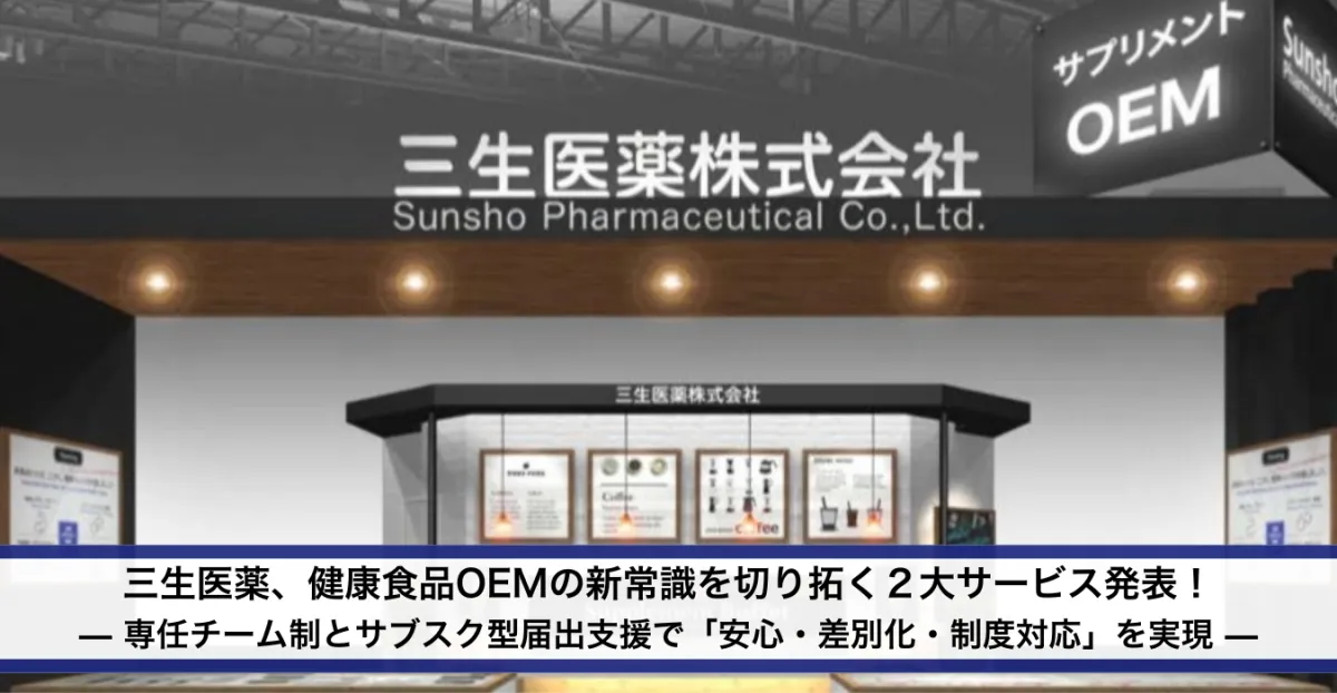 健康食品とサプリメントの受託開発製造において、三生医薬株式会社が新サービスを発表しました。これにより、顧客が直面する主要な課題を根本的に解決し、OEM市場のスタンダードを刷新します。新たに導入されたサービスは、特に「スピード」、「差別化」、「制度対応」に重きを置き、顧客の期待を超える商品開発をサポートします。