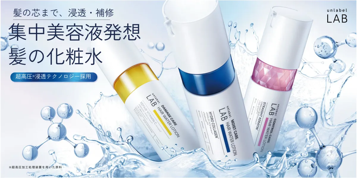 「アンレーベル ラボ ヘアウォーターローション」は、ダメージケア、モイストケア、コントロールケアの3つのラインが展開され、各自それぞれ異なる髪の悩みに特化しています。これらの製品は、洗い流す必要がなく、べたつくことなく髪の毛に馴染む使用感が特徴です。