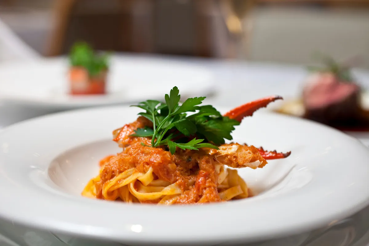 - - 6,300円:季節の一口、ズワイ蟹のタリオリーニ、シェフからのお魚料理、本日のデザート。