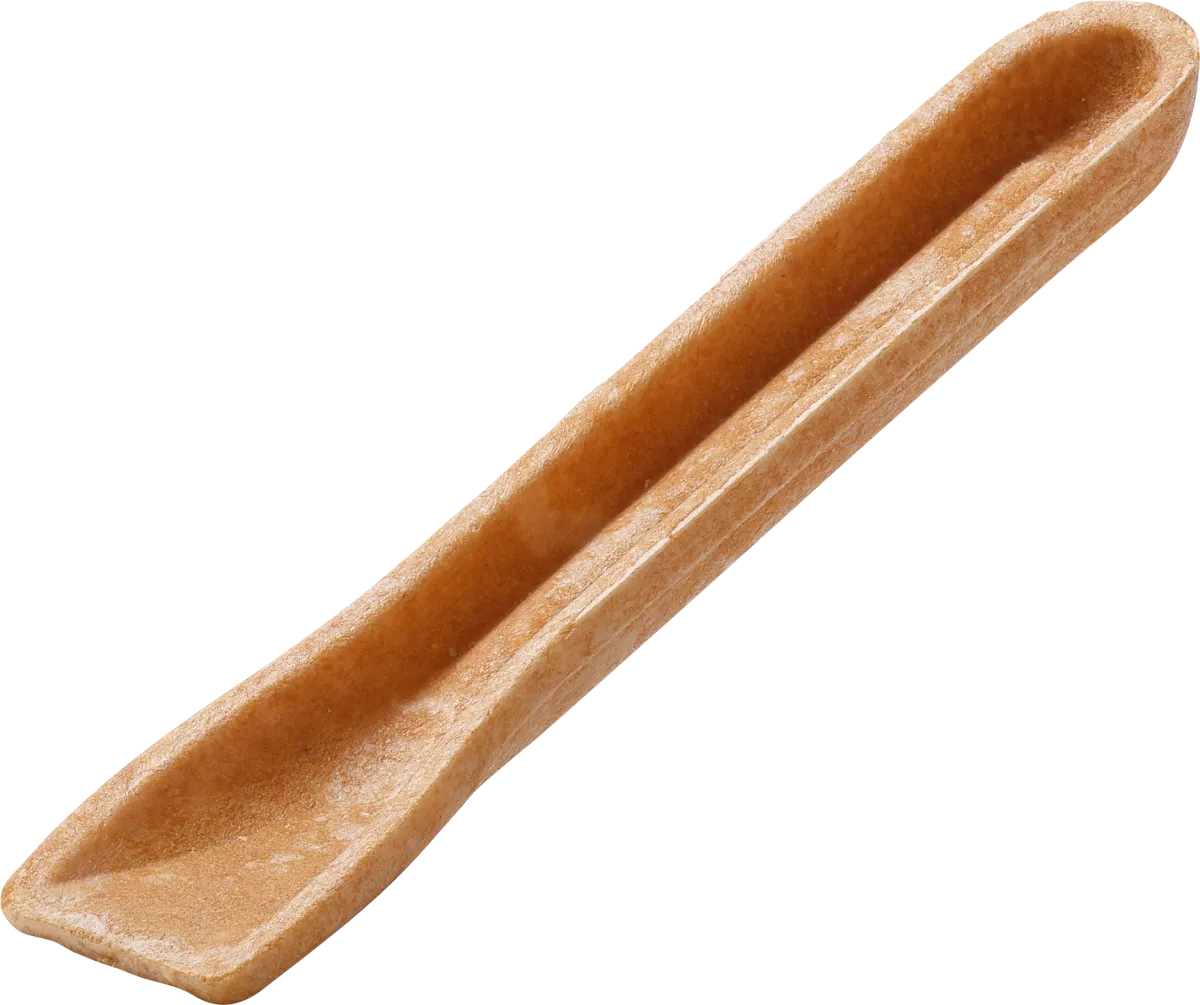 Eスプーンの開発にあたっては、強度と成形性のバランスを取ることが最大の課題でした。一般的なコーンカップは軽やかな食感が魅力ですが、それをスプーン形状にすると脆いものとなるため、何度も試行錯誤が行われました。持ち手の形状を工夫し、W形状にすることにより、強度を保ちながらも口当たりの良さが確保されました。このようにして、“美味しい”だけでなく、扱いやすいと感じられるスプーンが誕生しました。