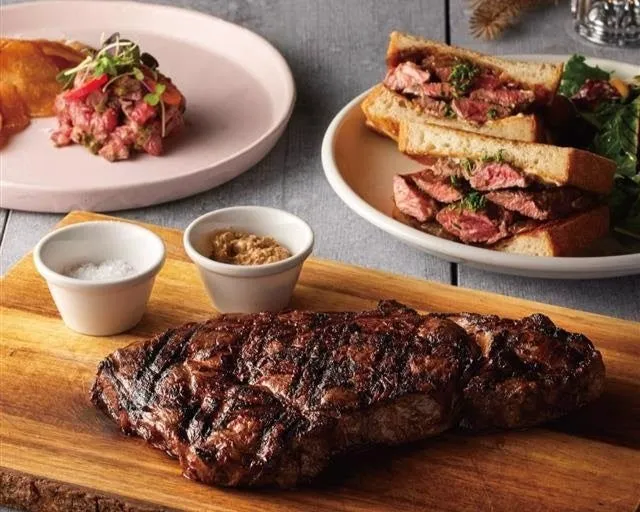 - - 軽い食事を希望する方には、赤身肉の旨みが感じられるステーキサンドイッチがおすすめです。鮮やかなサラダと合わせて、ランチなどにもぴったりな一品です。