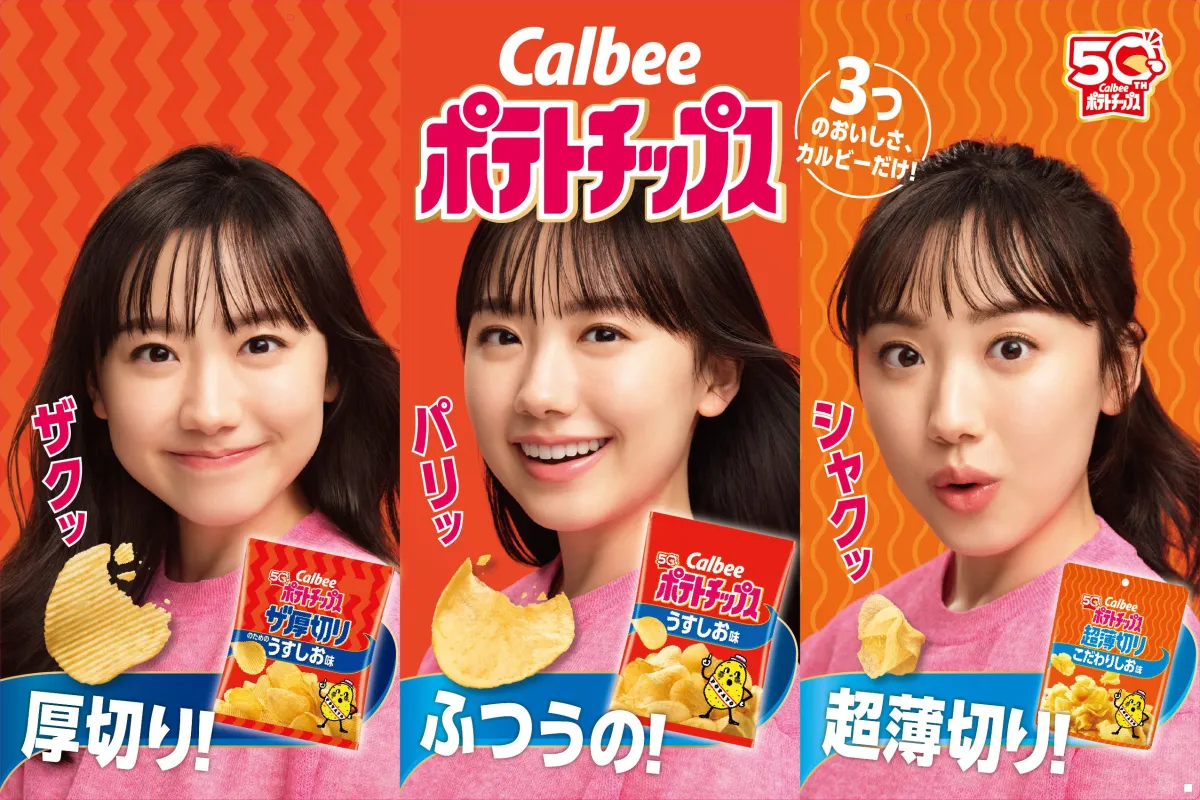 今回のCMでは、芦田さんは「ふつうの」「厚切り」「超薄切り」という3種類のポテトチップスをそれぞれイメージしたヘアスタイルにアレンジ。彼女の表情と声のみで、商品の個性を際立たせています。特に、長年愛され続けてきたポテトチップスの魅力が溢れ出す内容に仕上がっており、芦田さんの演技力の高さにも注目です。