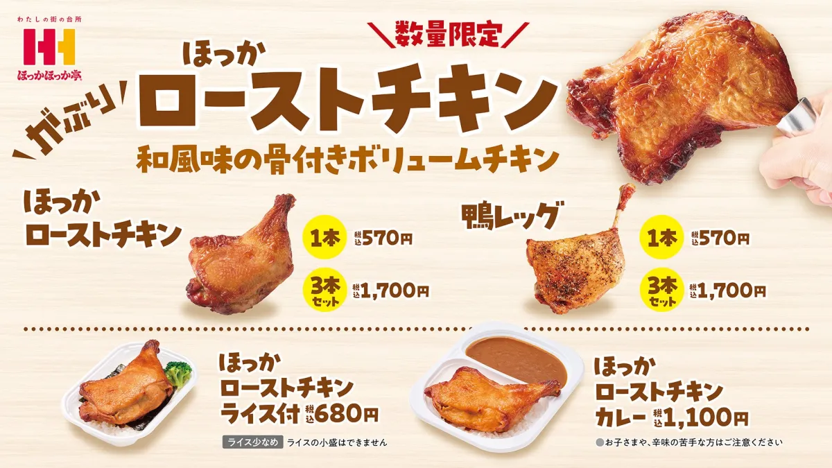 持ち帰り弁当の定番、ほっかほっか亭が今秋、待望の「ほっかローストチキン」と「鴨レッグ」を再び販売することが決まりました。これらのボリューム満点の骨付き肉は、特にクリスマスやお正月など、人が集まるシーズンにぴったりなメニューです。これまでに人気を博したこれらの商品が、10月20日から販売開始されます。