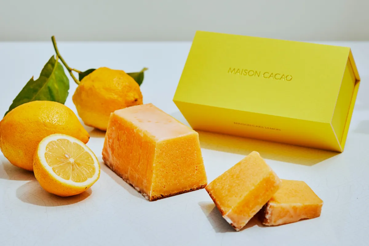 「MAISON CAKE レモン」は、広島県瀬戸田町で育まれた希少な国産レモンを贅沢に使用しています。このレモンは、特に香りと酸味が優れており、独自の製法によりその魅力を引き立てています。果皮と果汁を混ぜ合わせ、カカオビネガーを加えることで、さっぱりとした酸味とまろやかな果実味を表現。