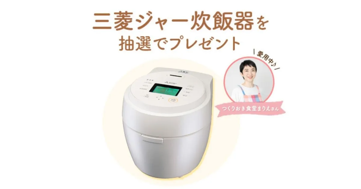 抽選で当たるのは、三菱ジャー炊飯器「本炭釜 紬」。この炊飯器は一粒一粒をじっくり炊き上げるので、出来上がったご飯はふっくらと美味しく、冷めても冷凍してもその美味しさが保たれます。また、低温調理メニューの作成もでき、料理の幅が広がる魅力的なアイテムです。この炊飯器は、つくりおき食堂まりえさんも愛用しているとのこと。彼女がどんな料理を作っているのか、興味が湧きますね。