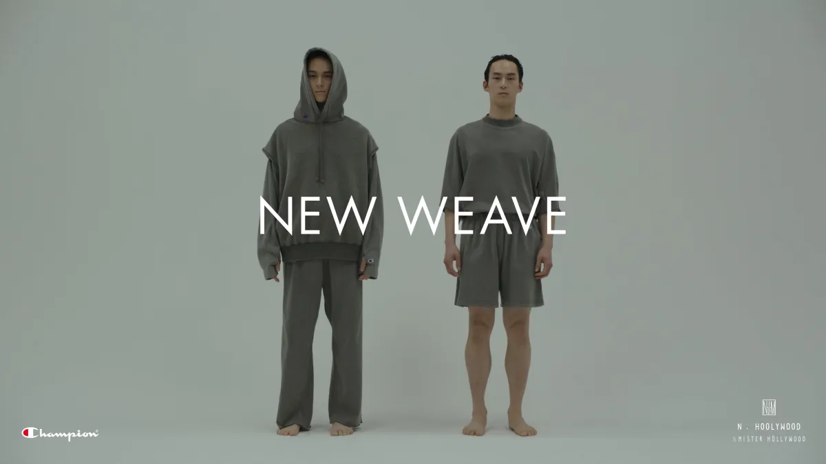 「NEW WEAVE」は、N.HOOLYWOODのデザイナー、尾花大輔氏がChampionの古いヴィンテージスウェットのエッセンスを新たに解釈したもの。彼のキャリアは古着屋から始まり、特にChampionの「REVERSE WEAVE®」製法にインスパイアされています。この効能は、スウェットが縮むという問題を克服した、洗練された技術であり、Championのシグネチャーです。