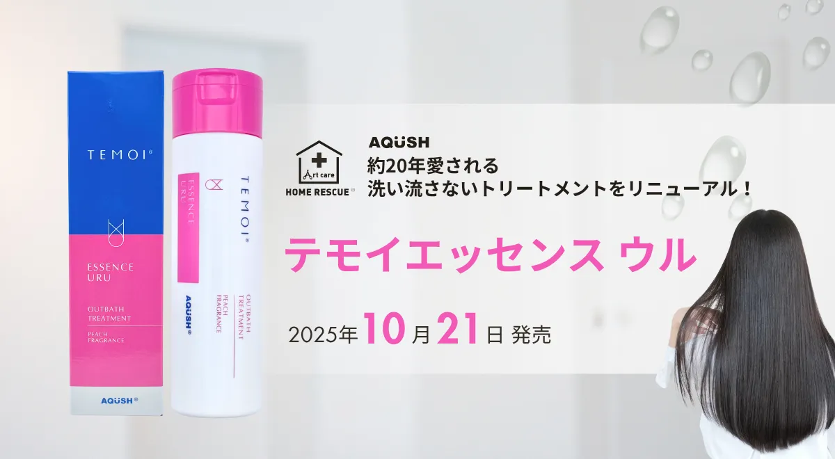 2025年10月21日、理美容室専売メーカー「AQUSH(アクシュ)」から、長年にわたり愛され続けてきた洗い流さないトリートメント「テモイ エッセンス」が新たにリニューアルされて登場します。今回のリニューアルでは、髪のダメージ補修力を高めるだけでなく、紫外線や熱、大気汚染、塩素などの環境からのストレスにも対応できる「環境対応力」を強化した新成分を配合しました。