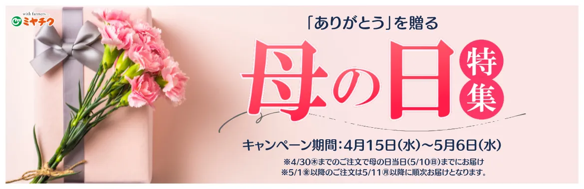 「母の日特集2026」の選び抜かれたギフトは、ミヤチクのオンラインショップで確認できます。
