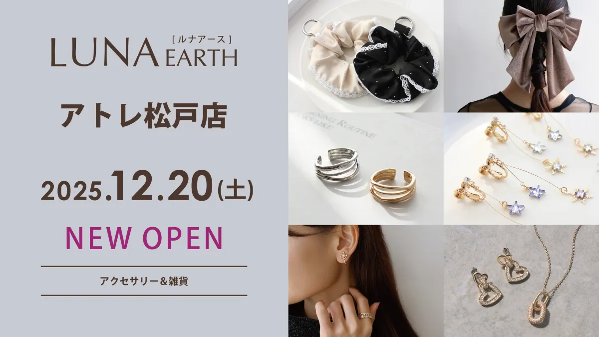 アクセサリー好きに朗報!新しいプチプラアクセサリーブランド「LUNA EARTH」が、2025年12月20日(土)にアトレ松戸にオープンします。このお店では、330円(税込)という手頃な価格から様々なビーズ製のアクセサリーやファッション雑貨が揃い、全ての人々が自分を表現できるアイテムを提供しています。