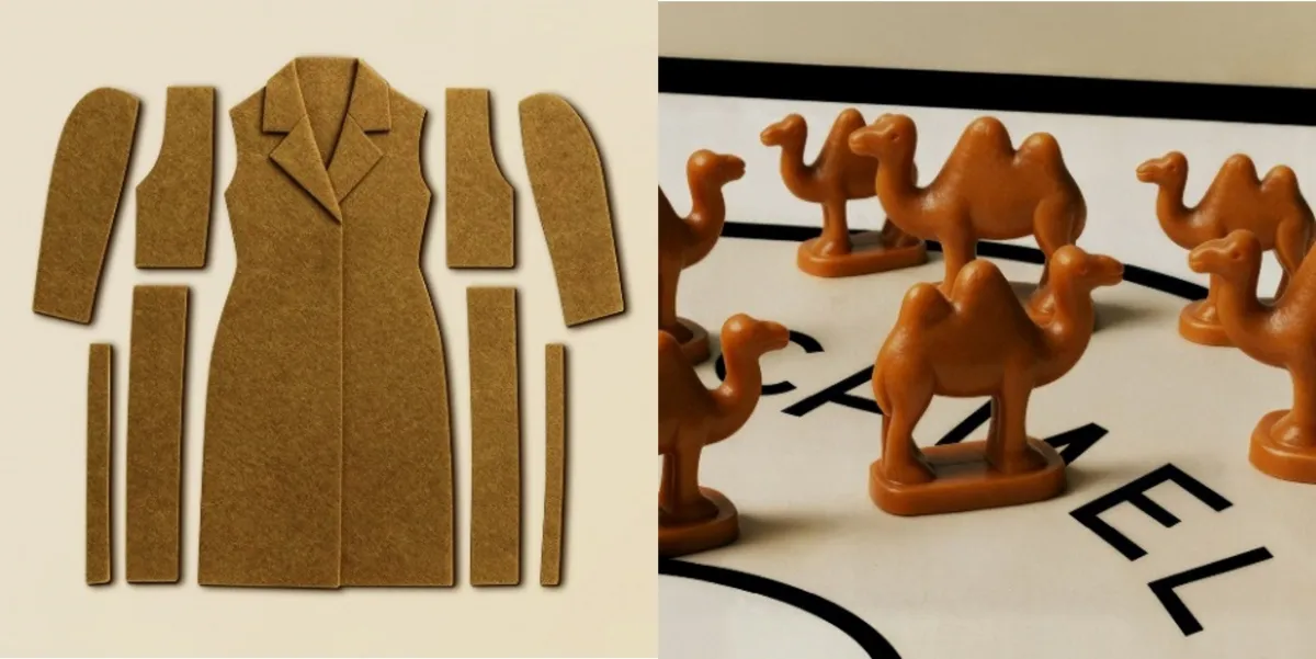 会場では、訪れる全ての方々が楽しめるインタラクティブなアートインスタレーションも用意されています。これは「すごろく」を模したもので、来場者がキャメルの素材が原毛から製品に変わる過程を体験しながら進める仕掛けです。マックスマーラのクラフツマンシップを遊びながら学ぶ素晴らしい機会です。
