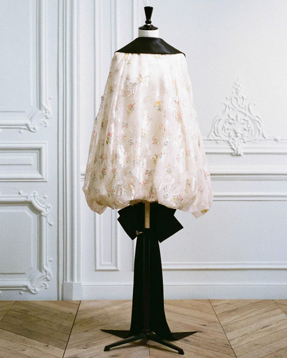 Diorのファッションにおいて「サヴォワールフェール」は、単なる技術や技法を超え、心を込めた手作りの価値が表されています。エレガンスと職人技が融合したDiorのデザインは、レティシアが実際に着ることで、その特別な感触が伝わってきます。この展示イベントでも、彼女の存在感はまさにそれを体現していました。見る者を引きつける美しさと、着る人を輝かせる力を秘めたDiorのドレスは、アートに対する深い理解が込められています。