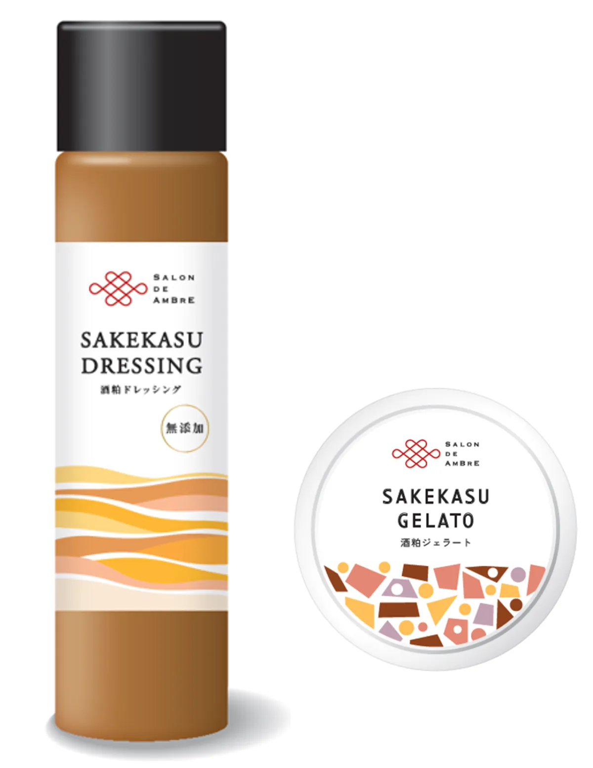 新たに発売される「SALON DE AMBRE 酒粕ドレッシング」は、添加物を一切使用せず、自然素材のみを使用。酒粕のコク深い味わいを楽しめるのが特徴です。また、「SALON DE AMBRE 酒粕ジェラート」は、まろやかな風味と冷たさの心地よさが合わさった商品です。いずれも、既存の食文化とサステナブルなアイデアの融合が感じられる美味しさに仕上がっています。