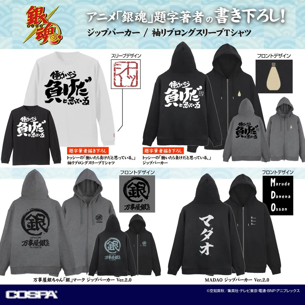 新たに登場するコスパ製のアパレルは、ファンにとって見逃せないものばかりです。特にトッシーの名セリフ“働いたら負けだと思っている。”がデザインされたジップパーカーは、一見の価値があります。このデザインは、アニメ『銀魂』第102話からインスパイアを受けて作られ、著名な書道家による直筆の文字で表現されています。