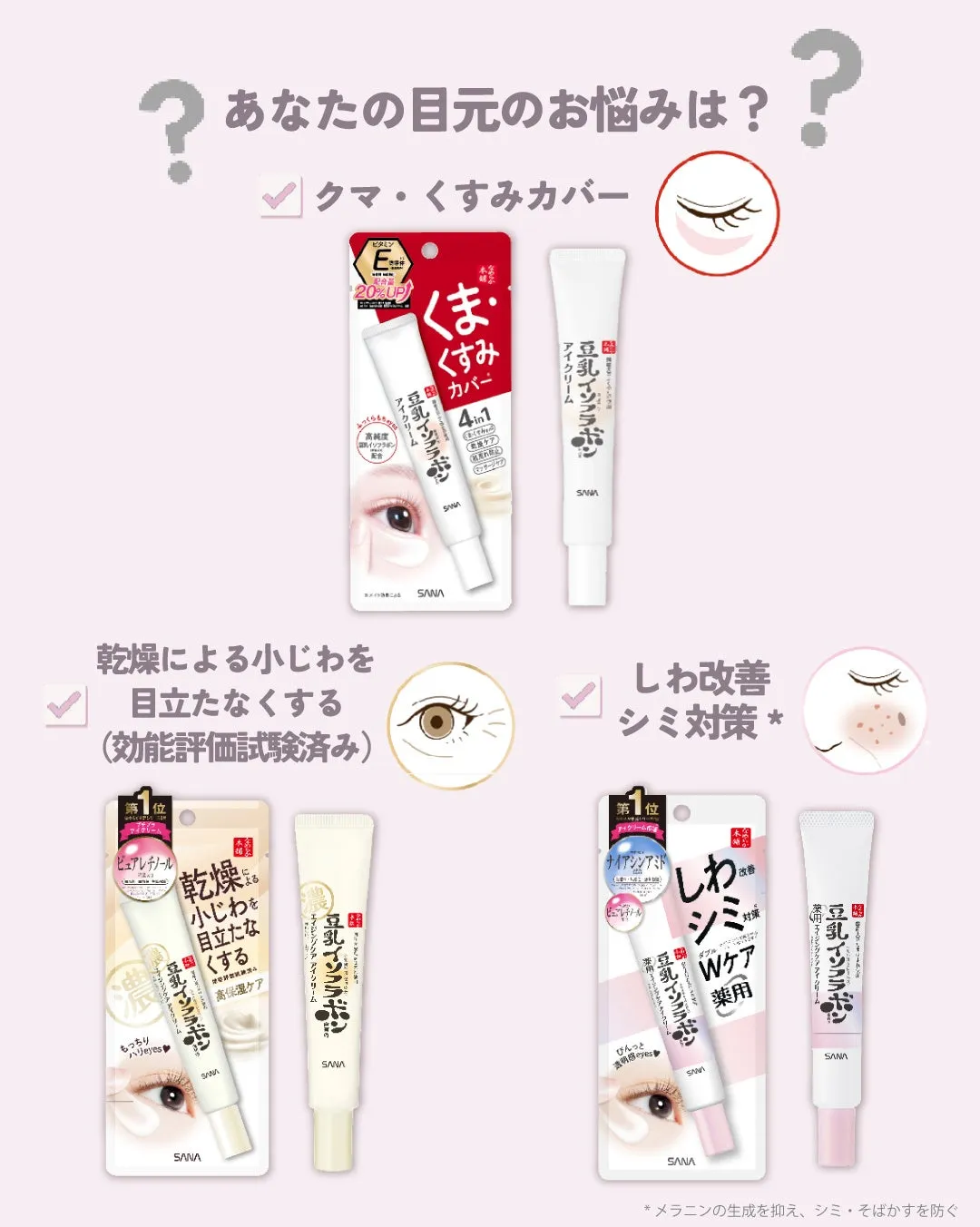 「なめらか本舗」からリリースされたアイクリームには、以下の3種が揃っています。これらはそれぞれ異なる効果を持ち、目元の悩みに応じて選べるのが魅力です。