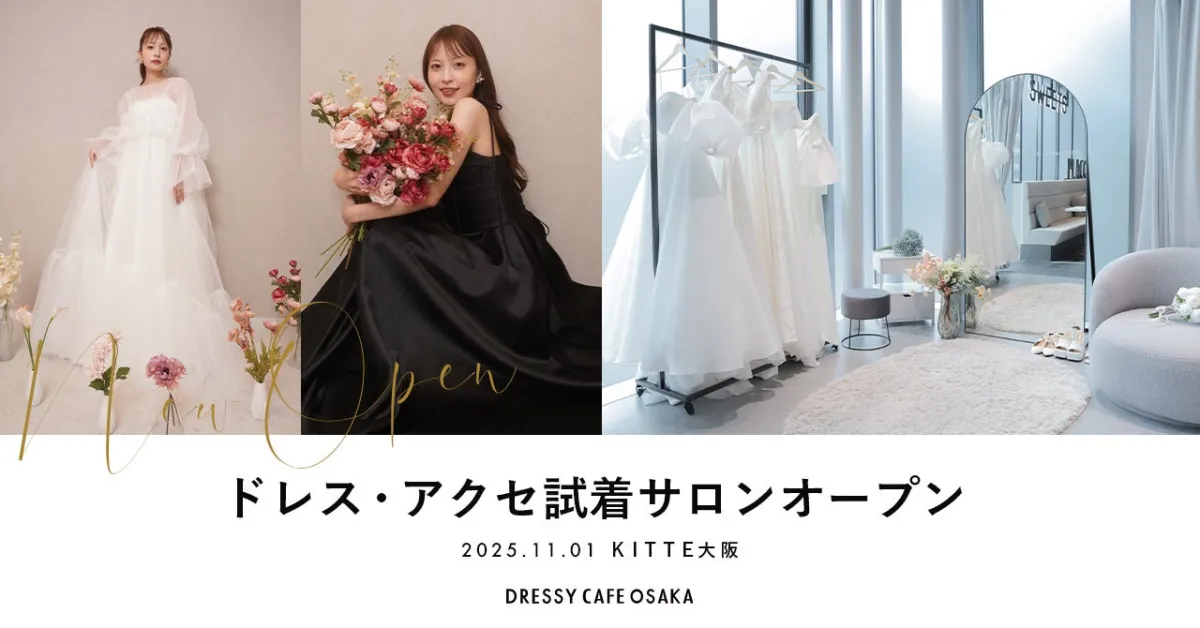 新たに関西エリアにオープンした「DRESSY ROOM OSAKA」は、花嫁のための特別な空間です。冒険社プラコレが展開するこのウェディングのテーマパークでは、オリジナルウェディングドレスや人気のコラボアクセサリーを試着できる予約が始まりました。