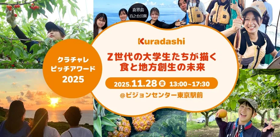 2025年11月28日、株式会社クラダシが主催する「クラチャレ ピッチアワード 2025」が東京で行われます。このイベントは、クラダシが運営する社会貢献型インターンシップ「クラダシチャレンジ」(通称:クラチャレ)に参加した学生が中心となって実施され、地域課題の解決を目指したピッチコンテストが行われます。