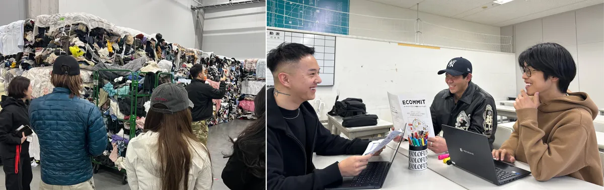 本プロジェクトは、株式会社ECOMMITおよびCANARI株式会社との連携により実施されます。学生たちは、実際に存在する企業課題に対処することで、ファッション産業における構造的課題を実感し、理解を深めています。また、ECOMMITが運営する東京サーキュラーセンターへの見学を通じて、循環型社会の実際の流れを体感しています。