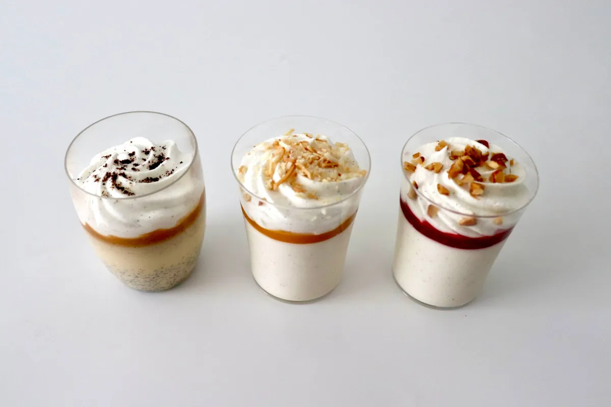 加熱方法や配合は、各レシピに最適化されています。滑らかさと香りが際立つ、口どけの良いプリンを実現しました。