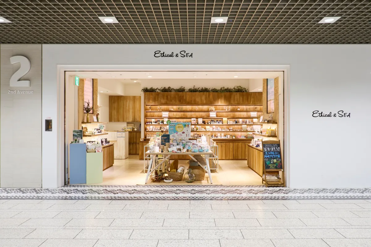 「Ethical&SEA」は、地球環境と自分自身に配慮したライフスタイルを提案しています。この店舗は川崎駅から直結しており、通勤や買い物の合間にも立ち寄りやすい場所にあります。オープン以来、地域の人々に愛され、多くの方々にエシカルでサステイナブルな商品の数々を提供し、大変好評をいただいています。