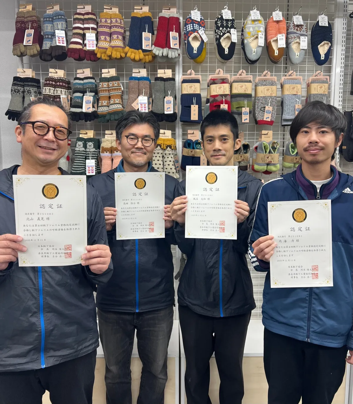 フクシンでは、自社工場で製造される靴下がさらに魅力的になるようメンバー全員が知識を深めることを目的に、奈良県靴下協同組合が実施する「靴下ソムリエ資格認定試験」に参加することを決定しました。2025年に行われた受験では、受験者163人の中で126名が合格、フクシンからは6名が見事認定を受けました。
