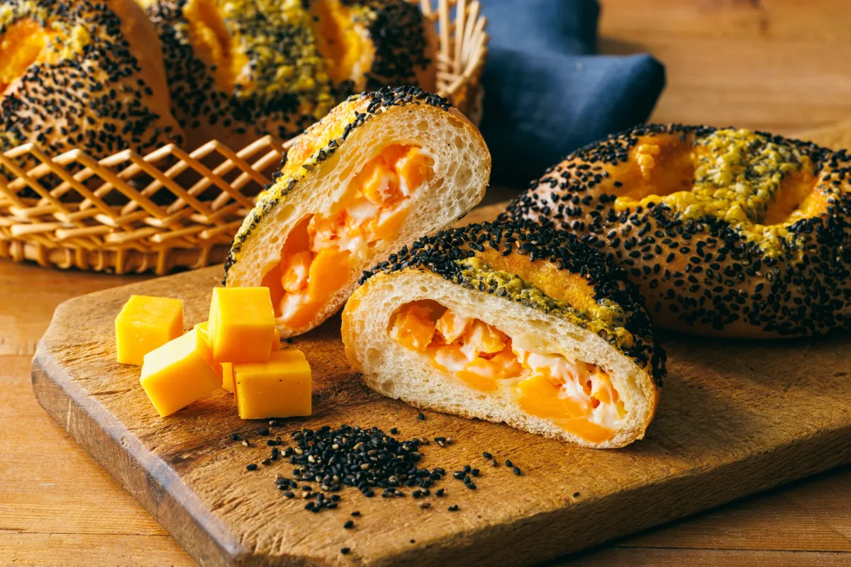 新たなチーズとごまのパンは、3種類のチーズ—シュレッドチーズ、ダイスチーズ、およびチーズソース—を贅沢に使用しています。これらのチーズは、個別に特性を持ちながら、絶妙なバランスで組み合わせることで、深いコクと風味を生み出しています。そして、香ばしい黒ゴマが加わることで、見た目にも美しい仕上がりとなり、食感も楽しめるアクセントとなっています。