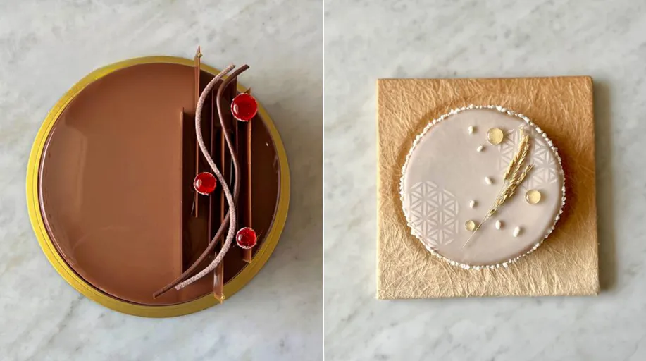 同氏のもう1つの受賞作は、米粉の特性を生かしたものです。リンゴとキャラメルを基に構成され、タルトやケーク生地が組み合わされています。中には自家製の焼きリンゴピューレやリンゴのパートドフリュイが隠れており、食感の楽しみも提供します。見た目は「お米の白さ」と「秋のお月見」をイメージしてデザインされています。