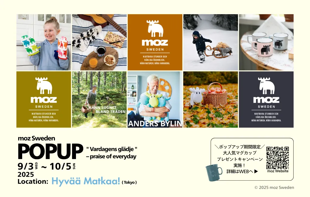 2025年9月3日から10月5日まで、東京の表参道にある「Hyvää Matkaa!」で特別なmozポップアップストアがオープンします。このポップアップでは、スウェーデンから直輸入された洗練されたデザインのアイテムが揃い、北欧の文化を存分に楽しむことができます。