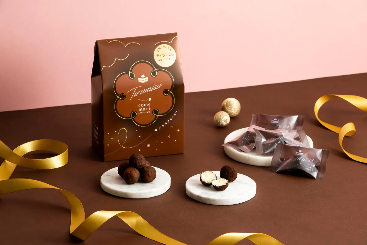 「comemari」では、初めてのホワイトチョコレート仕立ての『ティラミス味』は、特に注目すべきポイント。北海道産のマスカルポーネパウダーがふんだんに使われており、コーヒーとココアパウダーが絶妙に絡み合うことで、口の中で広がる深い甘さと風味が特長です。サクッとした食感が楽しめるこのスナックは、一口ごとに冬の心地よさを感じさせてくれます。