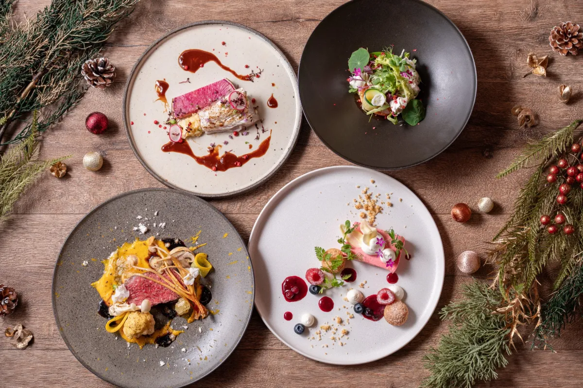 各料理は、地元産の材料にこだわり、心を込めて調理されています。焼き、炙り、燻製など様々な技法で仕上げられた料理は、まさにクリスマスにふさわしい華やかさです。