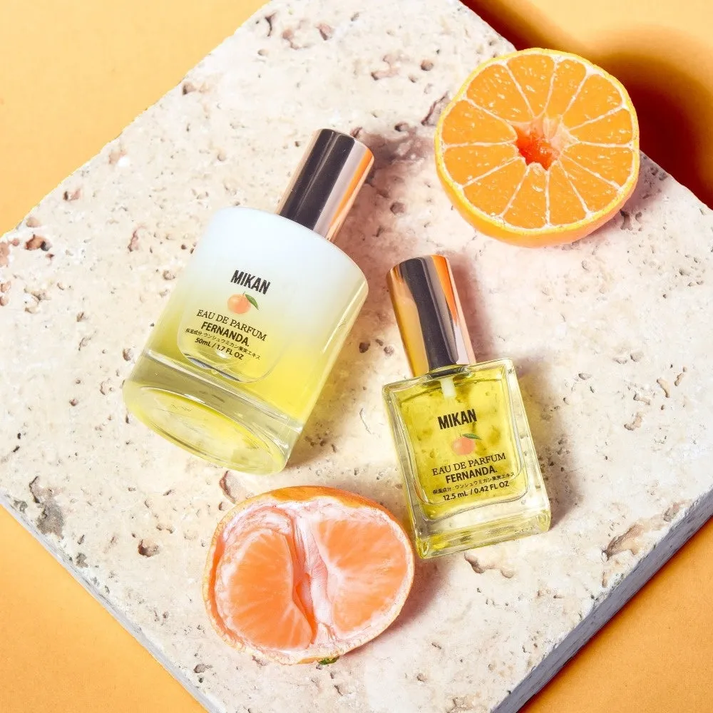 今回のコレクションは、果実を丸ごと絞ったかのような瑞々しいみかんの香りを基にしています。特に、オレンジの爽やかな甘さや軽やかな酸味、さらにはドライウッディーのスパイシーさが加わり、フェルナンダ特有の心温まる香りに仕上げられています。寒い冬に、あなたの心をほっこりとあたためてくれるような香りです。