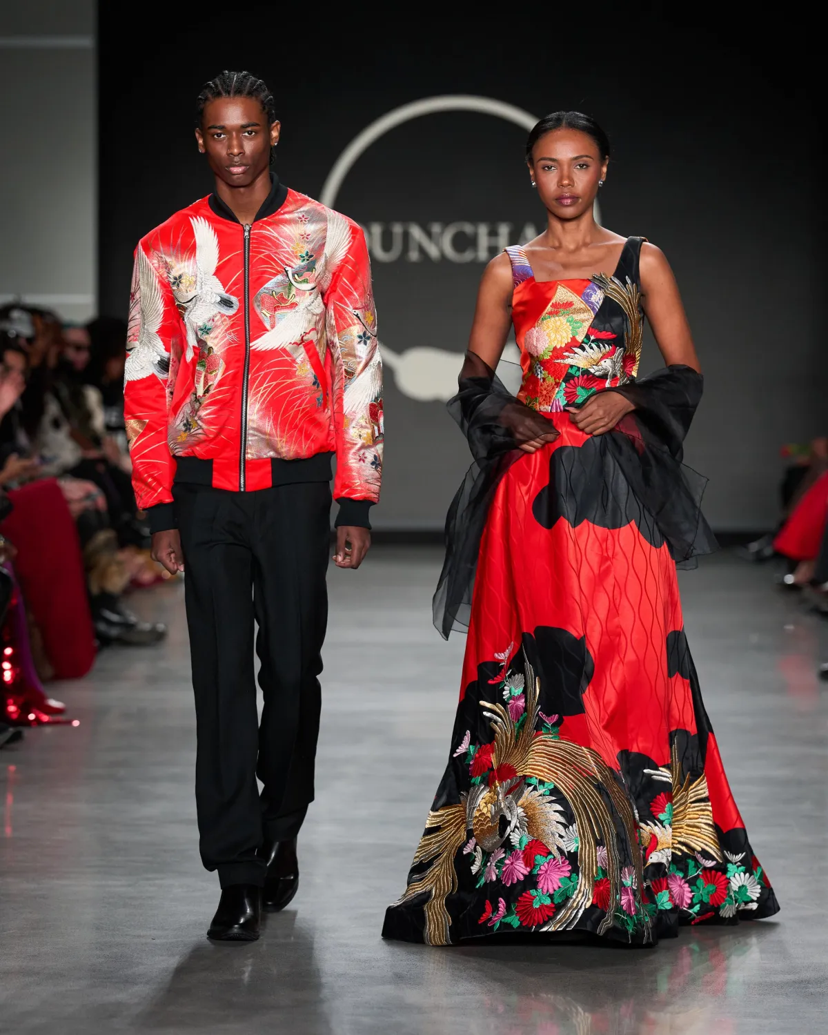 OUNCHANは、日本の伝統文化を現代のファッションへと再構築することを目指し、長年の歴史を持つ着物地を使ったコレクション「Mythic Birds(神話の鳥)」を発表しました。このコレクションでは、留袖、訪問着、振袖など、家族の物語が詰まった着物地を活用し、今を生きる服としての新たな可能性を探求しています。「Spiritual Couture(スピリチュアル・クチュール)」という概念のもと、現代のシルエットへと再構築することで、着物の持つ記憶や手技の価値を際立たせました。