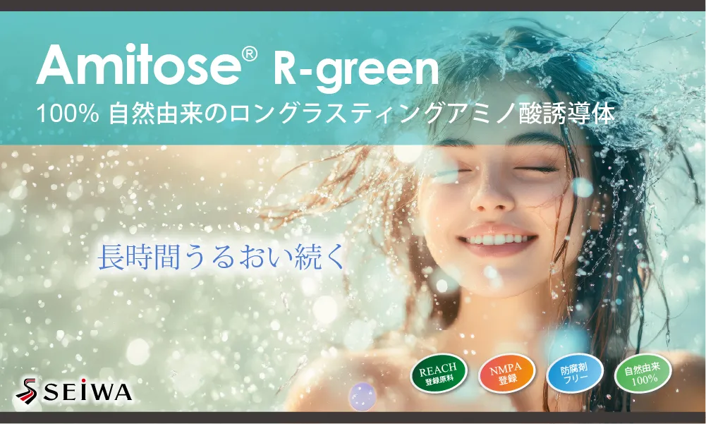 化粧品原料の開発を行う株式会社成和化成が、2026年4月に新たに発売する「Amitose® R-green」は、100%自然由来のアミノ酸誘導体で、特に「ロングラスティング保湿」を実現した画期的な成分です。このアミノ酸誘導体の登場は、化粧品市場において大きな注目を集めています。ここでは、Amitose R-greenの特長、開発の背景、そして利用方法について詳しく探っていきます。