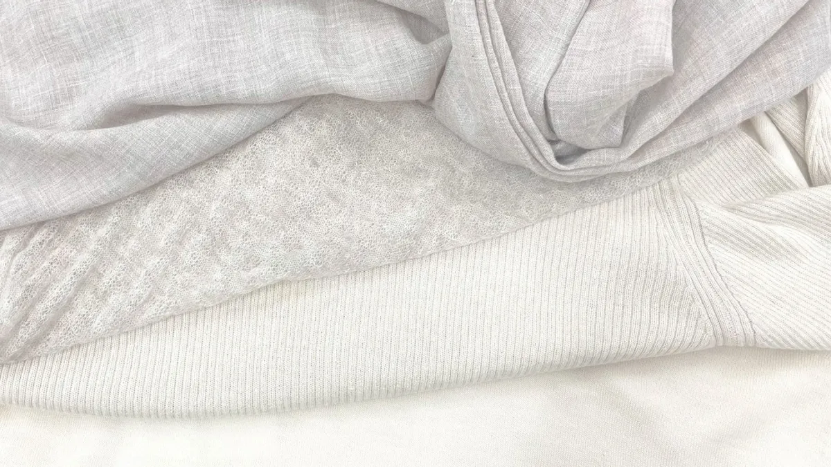猛暑が続く中、気温の変化が激しくなる秋に向けて、快適に過ごすための天然素材の重要性が増しています。特に、カシミヤをブレンドしたアイテムはその柔らかさと温かさが魅力です。当展では、シルクカシミヤやコットンカシミヤなど、薄手で柔らかい生地を使用したストールやニットを多数ラインナップ。これらは寒い時期には重ね着として、また暑い時期には軽やかなスタイルとして楽しむことができます。
